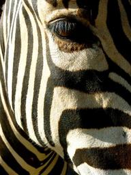 Keywords: zebra animal head view eye mammal look close animal eyelashes creature fur coat pattern zoo black striped