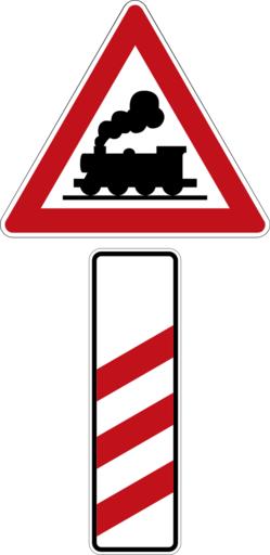 | Keywords: Zeichen 156 – dreistreifige Bake (rechts) vor unbeschranktem Bahnübergang, StVO 1970.svg  Zeichen 156 “ dreistreifige Bake links vor beschranktem Bahnübergang Quelle Bundesgesetzblatt Jahrgang 1970 Nr 108 S 1584 Tag der Ausgabe Bonn 5 Dezember 1970 Korrekte Widergabe des digitalen RAL-Farbtons Verkehrsrot Farbcode C1121C Diese Zeichenkombination wurde mit Datum zum 1 April 2013 ersatzlos aus der StVO gestrichen und darf nicht mehr angeordnet werden Sign No 156 “ three-stripe beacon LHS announcing fenced railroad crossing 156 návesÅ¥ pred priecestÃm 240 m 156 240 meter till järnvägskorsning vänster sida av vägen own Mediatus 27 Juli 2013 erstes Hochladedatum bei Wikimedia Commons + Signs User Mediatus/no-new-version Cc-zero PD-VzKat SVG road signs in Germany 156 svg Diagrams of danger warning road signs of Germany 1971 set 156 svg Diagrams of danger warning road signs of Germany 1992 set 156 svg Level crossing countdown markers in Germany Zeichen 156 Zeichen 151 |