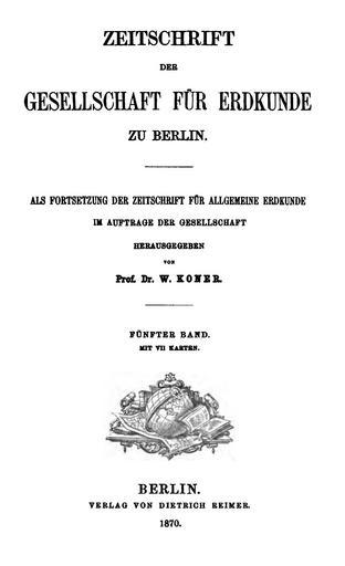 Keywords: Zeitschrift der Gesellschaft für Erdkunde zu Berlin 1870 Titel.jpg Titelseite der Zeitschrift / Title page of the periodical Eigenscan 1870 Diverse PD-old PD-US Magazines in German Magazine covers of Germany