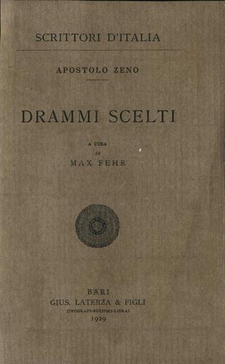 Keywords: Zeno - Drammi scelti, 1929 - 1970951 C.jpeg Book Zeno Apostolo Drammi scelti G Laterza Bari ita it Drammi scelti / Apostolo Zeno ; a cura di Max Fehr - Bari G Laterza 1929 - 289 p ; 22 cm - Scrittori d'Italia ; 117 http //gutenberg beic it/webclient/DeliveryManager pid 1970951 search_terms DTL4 BEIC 1970951 Institution BEIC PD-old-100-1923 Letteratura drammatica italiana - Sec 17 -18 Literature of Italy |