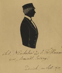 | Keywords: Zentralbibliothek Zürich - Adolf Nüscheler - 000008116 2.jpg Artwork de Eigenhändig beschriftet seinem Kommilitonen Fr Horner gewidmet datiert Zürich Sept 1849 1849 institution Zentralbibliothek Zürich ZB Graphische Sammlung GSB object history credit line Adolf Nüscheler 1830-1895 war ein Schweizer Arzt Der Sohn des Obergerichtsschreibers Matthias Nüscheler 1800 “1880 studierte ab dem Frühjahr 1849 Medizin an der Universität Zürich und schloss 1854 mit Promotion über Die pathologischen Veränderungen im Gelenkknorpel und Staatsexamen ab Der Sohn des Obergerichtsschreibers Matthias Nüscheler 1800 “1880 besuchte die Schulen in Zürich Er studierte ab dem Frühjahr 1849 Medizin an der Universität Zürich und schloss 1854 mit Promotion über Die pathologischen Veränderungen im Gelenkknorpel und Staatsexamen ab Nüscheler bildete sich weiter in Wien Berlin und Paris Im Mai 1855 zurückgekehrt wurde er zuerst Assistent bei Anton Abegg später eröffnete er eine eigene Praxis 1861 wurde er von der Hülfsgesellschaft zusammen mit Conrad Rahn zum Arzt der Allgemeinen Krankenkasse für Zürich ernannt 1891 gab er dieses Amt wegen einer schweren Lungenentzündung ab 1895 starb er an derselben Erkrankung Nüscheler war verheiratet und hatte drei Töchter Er war Mitbegründer der Allgemeinen Krankenkasse Quellen Martin Schmid 2009 Nüscheler Die Nachkommen des «Saüwschwaben» Familienstiftung Nüscheler Zürich 2009 S 103 http //nuescheler ch/buch html 104 online http //www matrikel uzh ch/active/static/15533 htm Nüscheler Adolf In Matrikeledition der Universität Zürich 1833 “1924 accession number 005764561 Public domain File Zentralbibliothek_Zürich_-_Adolf_Nüscheler_-_000008116_2 tif Zentralbibliothek_Zürich PD-old-100 People of Zürich 1849 in art 1830 births 1895 deaths |