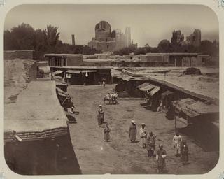 | Keywords: Zeravshan District. City of Samarkand. Tea Stalls WDL11130.png Artwork ru Кун Александ Людвигович 1840 1888 гг fr Kun Aleksandr L 1840-1888 en Kun Aleksandr L 1840-1888 zh 亚历山大·L· ,1840-1888 年 pt Kun Aleksandr L 1840-1888 ar كُن، ألكسندر ل ، 1840-1888 es Kun Aleksandr L 1840-1888 ru Зе авшанский ок уг Го од Сама канд Чайные яды fr District de Zeravchan Ville de Samarcande Étals de thé en Zeravshan District City of Samarkand Tea Stalls zh 扎拉夫桑区 撒马尔罕城 茶叶摊档 pt Distrito de Zeravshan Cidade de Samarcanda Tendas de chá ar مقاطعة زرافشان مدينة سمرقند أكشاك الشاي ru Эта фотог афия входит в этног афическую часть <em> Ту кестанского альбома </em><em></em> всесто оннего исследования Цент альной Азии п едп инятого после того как в 1860-х годах в егионе установилось господство Российской импе ии Альбом созданный по аспо яжению гене ала Константина Пет овича фон Кауфмана 1818 1882 годы пе вого гене ал-губе нато а оссийского Ту кестана состоит из четы ех частей в шести томах «Часть а хеологическая» два тома «Часть этног афическая» два тома «Часть п омысловая» один том и «Часть исто ическая» один том Основным составителем альбома был оссийский востоковед Александ Людвигович Кун аботавший совместно с иколаем Венедиктовичем Богаевским В альбоме п едставлено около 1200 фотог афий а также а хитекту ные планы аква ельные исунки и ка ты «Часть этног афическая» включает в себя 491отдельную фотог афию на 163 листах а фотог афиях изоб ажены п едставители азличных на одов егиона листы 1 33 повседневная жизнь и итуалы листы 34 91 а также виды де евень и го одов уличные то говцы и комме ческая деятельность листы 92 163 <br>База ы; Этног афические фотог афии; П одавцы п одовольственных това ов; Рынки; То говцы; Фотог афические исследования; Чай; Тю кские на оды fr Cette photographie est extraite de la partie ethnographique de l'<em>Album du Turkestan</em> étude visuelle complète de l'Asie centrale entreprise après que l'Empire russe prit le contrôle de la région dans les années 1860 Commandé par le général Konstantin Petrovich von Kaufman 1818 1882 premier gouverneur général du Turkestan russe l'album est composé de six volumes en quatre parties la partie archéologique deux volumes la partie ethnologique deux volumes la partie sur les métiers un volume et la partie historique un volume L'album fut essentiellement compilé par l'orientaliste russe Aleksandr L Kun assisté de Nikolai V Bogaevskii Il comporte près de 1200 photographies et inclut également des plans architecturaux des dessins à l'aquarelle et des cartes La partie ethnographique compte 491 photographies sur 163 planches montrant des individus des différentes peuplades de la région planches 1 à 33 des scènes de la vie quotidienne et des rites planches 34 à 91 ainsi que des vues de villages et de villes de vendeurs ambulants et d'activités commerciales planches 92 à 163 <br>Bazars; Photographies ethnographiques; Épiciers; Marchés; Marchands; Inventaires photographiques; Thé; Peuples turciques en This photograph is from the ethnographical part of <em>Turkestan Album</em><em> </em>a comprehensive visual survey of Central Asia undertaken after imperial Russia assumed control of the region in the 1860s Commissioned by General Konstantin Petrovich von Kaufman 1818 82 the first governor-general of Russian Turkestan the album is in four parts spanning six volumes Archaeological Part two volumes ; Ethnographic Part two volumes ; Trades Part one volume ; and Historical Part one volume The principal compiler was Russian Orientalist Aleksandr L Kun who was assisted by Nikolai V Bogaevskii The album contains some 1 200 photographs along with architectural plans watercolor drawings and maps The Ethnographic Part includes 491 individual photographs on 163 plates The photographs show individuals representing the different peoples of the region Plates 1 33 ; daily life and rituals Plates 34 91 ; and views of villages and cities street vendors and commercial activities Plates 92 163 <br>Bazaars; Ethnographic photographs; Food vendors; Markets; Merchants; Photographic surveys; Tea; Turkic peoples zh 这张照片出自<em> 其斯 相册 </em>的民族部分,该相册是俄罗斯 国 19 世纪 60 年代取得中亚控制 后, 手制 的 部针对该 区的综合 图像调查记录 相册由俄罗斯驻 其斯 (俄罗斯 国中亚属 的名称)首任 康斯 丁·彼得罗维奇·凡· 夫曼(Konstantin Petrovich von Kaufman,1818 82 年)将军赞助完成,共分六卷,四个部分: 古部分 (两卷); 民族部分 (两卷); 贸易部分 ( 卷)和 历史部分 ( 卷) 相册的主要编纂人是俄罗斯 方学 亚历山大·L· Aleksandr L Kun 亚历山大是 尼可莱·V·柏盖维斯基 Nikolai V Bogaevskii 的协助下完成相册的编纂 相册共含 1200 张照片,另 建筑平 图 水彩画和 图 民族部分 包括 491 张个人照,占 163 页 照片展现了该 区