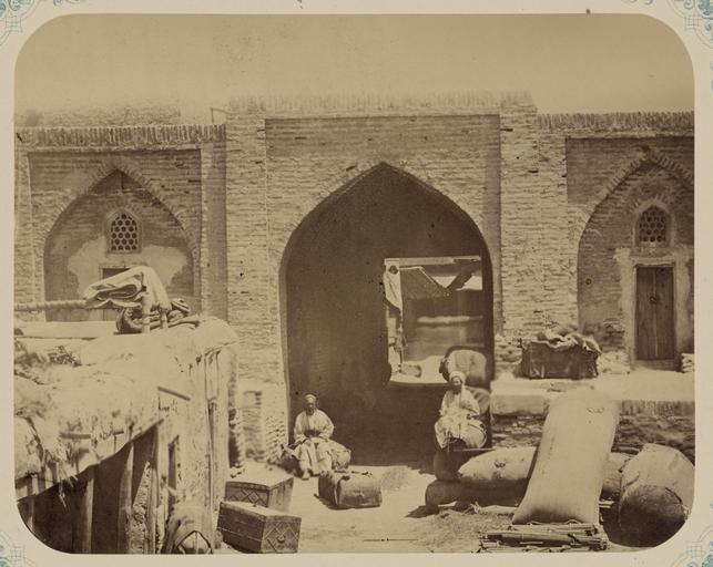 | Keywords: Zeravshan District. City of Samarkand. Warehouse for Wholesale Trade WDL11162.png Artwork ru Кун Александ Людвигович 1840 1888 гг fr Kun Aleksandr L 1840-1888 en Kun Aleksandr L 1840-1888 zh 亚历山大·L· ,1840-1888 年 pt Kun Aleksandr L 1840-1888 ar كُن، ألكسندر ل ، 1840-1888 es Kun Aleksandr L 1840-1888 ru Зе авшанский ок уг Го од Сама канд Са ай-склад для оптовой то говли fr District de Zeravchan Ville de Samarcande Entrepôt pour la vente en gros en Zeravshan District City of Samarkand Warehouse for Wholesale Trade zh 扎拉夫桑区 撒马尔罕城 供批发贸易用的仓库 pt Distrito de Zeravshan Cidade de Samarcanda Armazém para comércio por atacado ar مقاطعة زرافشان مدينة سمرقند مستودع للبيع بالجملة ru Эта фотог афия входит в этног афическую часть <em> Ту кестанского альбома </em><em></em> всесто оннего исследования Цент альной Азии п едп инятого после того как в 1860-х годах в егионе установилось господство Российской импе ии Альбом созданный по аспо яжению гене ала Константина Пет овича фон Кауфмана 1818 1882 годы пе вого гене ал-губе нато а оссийского Ту кестана состоит из четы ех частей в шести томах «Часть а хеологическая» два тома «Часть этног афическая» два тома «Часть п омысловая» один том и «Часть исто ическая» один том Основным составителем альбома был оссийский востоковед Александ Людвигович Кун аботавший совместно с иколаем Венедиктовичем Богаевским В альбоме п едставлено около 1200 фотог афий а также а хитекту ные планы аква ельные исунки и ка ты «Часть этног афическая» включает в себя 491отдельную фотог афию на 163 листах а фотог афиях изоб ажены п едставители азличных на одов егиона листы 1 33 повседневная жизнь и итуалы листы 34 91 а также виды де евень и го одов уличные то говцы и комме ческая деятельность листы 92 163 <br>Этног афические фотог афии; То говцы; Фотог афические исследования; То говля; Тю кские на оды; Склады fr Cette photographie est extraite de la partie ethnographique de l'<em>Album du Turkestan</em> étude visuelle complète de l'Asie centrale entreprise après que l'Empire russe prit le contrôle de la région dans les années 1860 Commandé par le général Konstantin Petrovich von Kaufman 1818 1882 premier gouverneur général du Turkestan russe l'album est composé de six volumes en quatre parties la partie archéologique deux volumes la partie ethnologique deux volumes la partie sur les métiers un volume et la partie historique un volume L'album fut essentiellement compilé par l'orientaliste russe Aleksandr L Kun assisté de Nikolai V Bogaevskii Il comporte près de 1200 photographies et inclut également des plans architecturaux des dessins à l'aquarelle et des cartes La partie ethnographique compte 491 photographies sur 163 planches montrant des individus des différentes peuplades de la région planches 1 à 33 des scènes de la vie quotidienne et des rites planches 34 à 91 ainsi que des vues de villages et de villes de vendeurs ambulants et d'activités commerciales planches 92 à 163 <br>Photographies ethnographiques; Marchands; Inventaires photographiques; Commerce; Peuples turciques; Entrepôts en This photograph is from the ethnographical part of <em>Turkestan Album</em><em> </em>a comprehensive visual survey of Central Asia undertaken after imperial Russia assumed control of the region in the 1860s Commissioned by General Konstantin Petrovich von Kaufman 1818 82 the first governor-general of Russian Turkestan the album is in four parts spanning six volumes Archaeological Part two volumes ; Ethnographic Part two volumes ; Trades Part one volume ; and Historical Part one volume The principal compiler was Russian Orientalist Aleksandr L Kun who was assisted by Nikolai V Bogaevskii The album contains some 1 200 photographs along with architectural plans watercolor drawings and maps The Ethnographic Part includes 491 individual photographs on 163 plates The photographs show individuals representing the different peoples of the region Plates 1 33 ; daily life and rituals Plates 34 91 ; and views of villages and cities street vendors and commercial activities Plates 92 163 <br>Ethnographic photographs; Merchants; Photographic surveys; Trade; Turkic peoples; Warehouses zh 这张照片出自<em> 其斯 相册 </em>的民族部分,该相册是俄罗斯 国 19 世纪 60 年代取得中亚控制 后, 手制 的 部针对该 区的综合 图像调查记录 相册由俄罗斯驻 其斯 (俄罗斯 国中亚属 的名称)首任 康斯 丁·彼得罗维奇·凡· 夫曼(Konstantin Petrovich von Kaufman,1818 82 年)将军赞助完成,共分六卷,四个部分: 古部分 (两卷); 民族部分 (两卷); 贸易部分 ( 卷)和 历史部分 ( 卷) 相册的主要编纂人是俄罗斯 方学 亚历山大·L· Aleksandr L Kun 亚历山大是 尼可莱·V·柏盖维斯基 Nikolai V Bogaevskii 的协助下完成相册的编纂 相册共含 1200 张照片,另 建筑平 图 水彩画和 图 民族部分 包括 491 