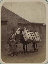 | Keywords: Zeravshan District. City of Samarkand. A Man with a Horse WDL11137.png  Artwork ru Кун Александ Людвигович 1840 1888 гг fr Kun Aleksandr L 1840-1888 en Kun Aleksandr L 1840-1888 zh 亚历山大·L· ,1840-1888 年 pt Kun Aleksandr L 1840-1888 ar كُن، ألكسندر ل ، 1840-1888 es Kun Aleksandr L 1840-1888 ru Зе авшанский ок уг Го од Сама канд  ужчина с лошадью fr District de Zeravchan Ville de Samarcande Un homme avec un cheval en Zeravshan District City of Samarkand A Man with a Horse zh 扎拉夫桑区 撒马尔罕城 男子与马 pt Distrito de Zeravshan Cidade de Samarcanda Um homem com um cavalo ar مقاطعة زرافشان مدينة سمرقند رجل وحصان ru Эта фотог афия входит в этног афическую часть <em> Ту кестанского альбома </em><em></em>   всесто оннего исследования Цент альной Азии п едп инятого после того как в 1860-х годах в  егионе установилось господство Российской импе ии Альбом созданный по  аспо яжению гене ала Константина Пет овича фон Кауфмана 1818 1882 годы пе вого гене ал-губе нато а  оссийского Ту кестана состоит из четы ех частей в шести томах «Часть а хеологическая» два тома «Часть этног афическая» два тома «Часть п омысловая» один том и «Часть исто ическая» один том Основным составителем альбома был  оссийский востоковед Александ Людвигович Кун  аботавший совместно с  иколаем Венедиктовичем Богаевским В альбоме п едставлено около 1200 фотог афий а также а хитекту ные планы аква ельные  исунки и ка ты «Часть этног афическая» включает в себя 491отдельную  фотог афию на 163 листах  а фотог афиях изоб ажены п едставители  азличных на одов  егиона листы 1 33 повседневная жизнь и  итуалы листы 34 91 а также виды де евень и го одов уличные то говцы и комме ческая деятельность листы 92 163 <br>Этног афические фотог афии; Лошади; Вьючные животные; Фотог афические исследования; Тю кские на оды fr Cette photographie est extraite de la partie ethnographique de l'<em>Album du Turkestan</em> étude visuelle complète de l'Asie centrale entreprise après que l'Empire russe prit le contrôle de la région dans les années 1860 Commandé par le général Konstantin Petrovich von Kaufman 1818 1882 premier gouverneur général du Turkestan russe l'album est composé de six volumes en quatre parties  la partie archéologique deux volumes la partie ethnologique deux volumes la partie sur les métiers un volume et la partie historique un volume L'album fut essentiellement compilé par l'orientaliste russe Aleksandr L  Kun assisté de Nikolai V  Bogaevskii Il comporte près de 1200 photographies et inclut également des plans architecturaux des dessins à l'aquarelle et des cartes La partie ethnographique compte 491 photographies sur 163 planches montrant des individus des différentes peuplades de la région planches 1 à 33 des scènes de la vie quotidienne et des rites planches 34 à 91 ainsi que des vues de villages et de villes de vendeurs ambulants et d'activités commerciales planches 92 à 163 <br>Photographies ethnographiques; Chevaux; Bêtes de somme; Inventaires photographiques; Peuples turciques en This photograph is from the ethnographical part of <em>Turkestan Album</em><em> </em>a comprehensive visual survey of Central Asia undertaken after imperial Russia assumed control of the region in the 1860s Commissioned by General Konstantin Petrovich von Kaufman 1818 82 the first governor-general of Russian Turkestan the album is in four parts spanning six volumes Archaeological Part two volumes ; Ethnographic Part two volumes ; Trades Part one volume ; and Historical Part one volume The principal compiler was Russian Orientalist Aleksandr L Kun who was assisted by Nikolai V Bogaevskii The album contains some 1 200 photographs along with architectural plans watercolor drawings and maps The Ethnographic Part includes 491 individual photographs on 163 plates The photographs show individuals representing the different peoples of the region Plates 1 33 ; daily life and rituals Plates 34 91 ; and views of villages and cities street vendors and commercial activities Plates 92 163 <br>Ethnographic photographs; Horses; Pack animals; Photographic surveys; Turkic peoples zh 这张照片出自<em>   其斯 相册 </em>的民族部分,该相册是俄罗斯 国  19 世纪 60 年代取得中亚控制 后, 手制 的 部针对该 区的综合 图像调查记录 相册由俄罗斯驻  其斯 (俄罗斯 国中亚属 的名称)首任  康斯 丁·彼得罗维奇·凡· 夫曼(Konstantin Petrovich von Kaufman,1818 82 年)将军赞助完成,共分六卷,四个部分:  古部分 (两卷); 民族部分 (两卷); 贸易部分 ( 卷)和 历史部分 ( 卷) 相册的主要编纂人是俄罗斯 方学 亚历山大·L·  Aleksandr L Kun  亚历山大是 尼可莱·V·柏盖维斯基 Nikolai V Bogaevskii 的协助下完成相册的编纂 相册共含 1200 张照片,另 建筑平 图 水彩画和 图  民族部分 包括 491 张个人照,占 163 页 照片展现了该 区各个民族的人物形