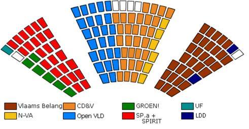 | Keywords: Zetelverdeling VlaamsParlement.png De zetelverdeling van het Vlaams Parlement Gebaseerd op de zetelverdeling te vinden op www vlaamsparlement be Maar dan zwaar aangepast Transfered from http //nl wikipedia org nl wikipedia 2006-01-27 Original uploader was Didius at http //nl wikipedia org nl wikipedia Later version s were uploaded by Peephole at http //nl wikipedia org nl wikipedia Released into the public domain by the author nl wikipedia Didius Original upload log page nl wikipedia Zetelverdeling_VlaamsParlement png 2007-08-24 14 43 Peephole 518×270×8 34288 bytes <nowiki> </nowiki> 2006-01-27 18 26 Didius 508×262×8 110877 bytes <nowiki>Versie die beter overeenkomt met die van de kamer</nowiki> 2006-01-27 14 41 Didius 402×229×8 77587 bytes <nowiki>had verkeerde versie geupload</nowiki> 2006-01-27 14 40 Didius 402×229×8 78213 bytes <nowiki>De zetelverdeling van het Vlaams Parlement Gebaseerd op de zetelverdeling te vinden op www vlaamsparlement be Maar dan zwaar aangepast </nowiki> Flemish Parliament Election apportionment diagrams of Belgium |