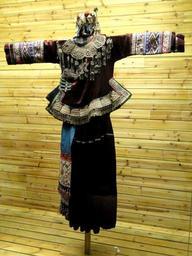 Keywords: Zhuang woman embroidered, silver-ornamented dress - Yunnan Nationalities Museum - DSC04250.JPG Zhuang woman embroidered silver-ornamented dress Clothing exhibited in the Yunnan Nationalities Museum Kunming Yunnan China I took this photograph 2011-08-13 02 15 29 Daderot Public domain Clothing in the Yunnan Nationalities Museum Zhuang clothing |
