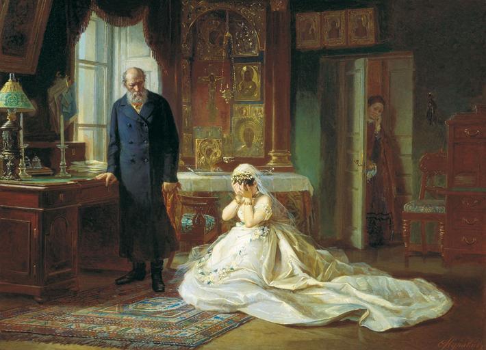 | Keywords: Zhuravlev 03.jpg Firs Sergeyevich Zhuravlev 1836-1901 Before the wedding Фи с Се геевич Жу авлёв 1836-1901 Пе ед венцом Location Госуда ственная Т етьяковская гале ея <br> Dimensions 99х134 cm <br> Web source http //www art-catalog ru/picture php id_picture 13748 <br> Technique oil on canvas < 1874 Creator Firs Zhuravlev File Zhuravlev 05 jpeg PD-old-100 Firs Zhuravlev Marriage of Russia in art Arranged marriage | ||||