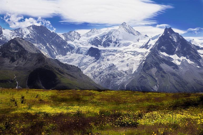 Keywords: Zinalrothorn02.jpg en Zinalrothorn from north-west Own 400er 2006-09-27 Mountains in the canton of Valais Zinalrothorn Schalihorn Besso Snow in Switzerland Blooming flowers with snowy mountains