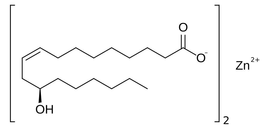 Keywords: Zinc ricinoleate.svg Chemical structure of zinc ricinoleate Own 13 41 24 January 2015 UTC Ed Edgar181 Fatty acids Zinc compounds