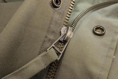 MAKE A MEME View Large Image zip closure hack detail jacket olive press-studs macro close green button