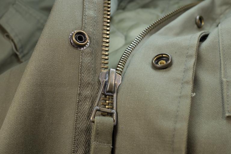 MAKE A MEME View Large Image zip closure hack detail jacket olive press-studs macro close green button