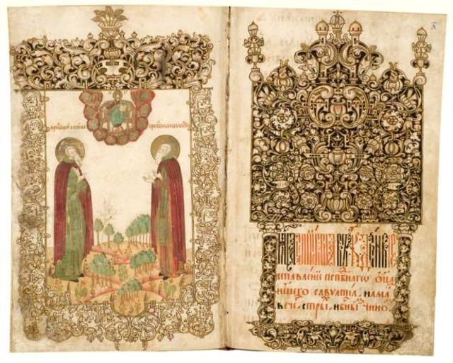 | Keywords: Zosima and Sabbatius (GIM, Tschuk.) 2.jpg ЖИТИЕ ПРЕПОДОБ ЫХ ЗОСИ Ы И САВВАТИЯ СОЛОВЕЦКИХ Вто ая половина XVII века Бумага; че нила аква ель кинова ь; пе еплет де ево кожа металл 418 л 31 х 19 х 7 5 Поступило в 1905 году в составе коллекции П И Щукина ГИ инв 23905 ОР Щук 539 http //www svyatayarus ru/data/manuscripts/125_manuscript_life_of_sts_zosima_and_savvati_of_solovki/index php Конец XVI начало XVII века anonymous PD-Art Zosimas and Sabbatius Manuscripts in Moscow State Historical Museum 16th-century art in the Moscow State Historical Museum Exhibition Sainte Russie Moscow 2011 - books Files uploaded by Shakko from various sources |