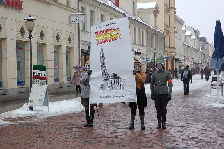 Keywords: Zurückindiezukunft1.JPG en Protest march back to the future against the rebuilding of the Garnisonskirche - Potsdam Brandenburger Straße 2013-03-19 de Demonstration von Wiederaufbaugegner der Garnisonskirche Zurück in die Zukunft am 19 März Potsdam Brandenburger Straße own Huysman 2013-03-19 Cc-zero 2013 in Potsdam |