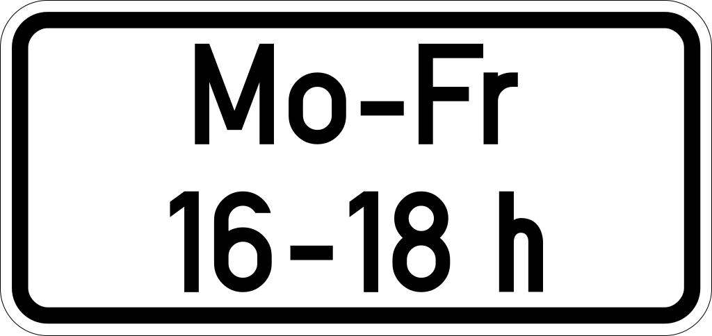 | View Original: | Zusatzzeichen 720 - zeitliche Beschränkung (zweizeilig).svg (965x456) | |||