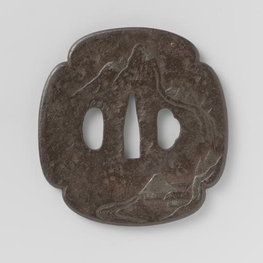 | Keywords: Zwaardstootplaat-Rijksmuseum AK-MAK-1074.jpeg accession number AK-MAK-1074 Anonymous credit line GWToolset Rijksmuseum nl Mokko-vormige tsuba met aan de voorzijde in reliëf een berglandschap met hutten en een waterval; aan de achterzijde een stroom; details ingelegd in goud en zilver nunome-zogan Label Line anoniem 1600 - 1725 ijzer Height cm 8 1 Width cm 7 7 exhibition history Institution Rijksmuseum iron ; gold ; silver object history Acquisition 1972 object type PD-US PD-old Data and photography rights All data and all images made available through the API are either in the public domain or are subject to a CC0 license https //www rijksmuseum nl/en/api/terms-and-conditions-of-use cc-zero place of creation Japan http //www rijksmuseum nl/collectie/AK-MAK-1074 http //hdl handle net/10934/RM0001 COLLECT 1058 handle Zwaardstootplaat Uploaded with GWToolset Rijksmuseum AK-MAK-1074 http //www rijksmuseum nl/media/assets/AK-MAK-1074 Images uploaded by Fæ Art of Japan in the Rijksmuseum Images from the Rijksmuseum |