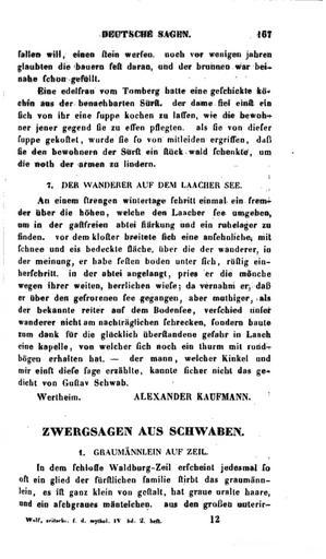 Keywords: Zwergsagen aus Schwaben (Birlinger) 1.jpg Zwergsagen aus Schwaben Birlinger _ jpg 2 Zwergsagen aus Schwaben Aus Zeitschrift für Deutsche Mythologie und Sittenkunde Begründet von Dr J W Wolf Dritter Band S 167 “172 5QILAAAAQAAJ 1855 Anton Birlinger Author died more than 70 years ago - public domain PD-old De Wikisource book leaflet |