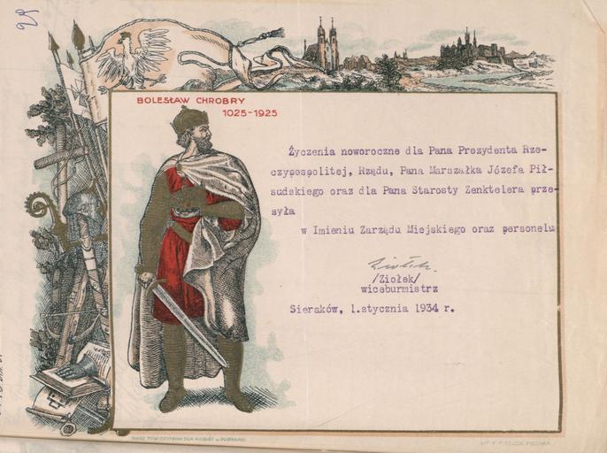 Keywords: Zyczenia dla Jozefa Pilsudskiego z okazji Nowego Roku(03).jpg paper accession number 53/4616/502 place of creation Sieraków cc-zero Józef Piłsudski State Archive in Poznań Uploaded with VicuñaUploader Sieraków Wielkopolska Boleslaus I of Poland in engravings 1934 documents |