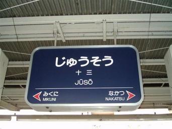 Keywords: Zyusou Sta Name Takaraduka Line.JPG en Station Name of Zyusou Station Photograpy Nozomikobe/10 Jun 2006 ja 十三駅の 塚線駅名標 撮影 Nozomikobe/10 Jun 2006 2006-06-11 own assumed Nozomikobe Juso Station